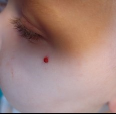 Een kind van 11 maanden heeft sinds enkele dagen een rode, bolvormige afwijking op de linkerwang.