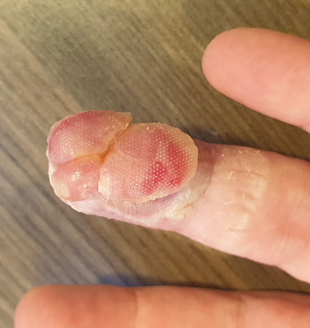 Snel bloedende laesie vingertop